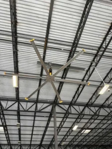 Installed two Basic 6 overhead ceiling fans (16-foot diameter, 2.0HP, 3-phase, 400–480V)