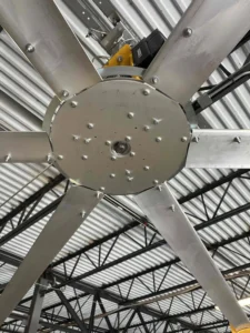 Installed two Basic 6 overhead ceiling fans (16-foot diameter, 2.0HP, 3-phase, 400–480V)